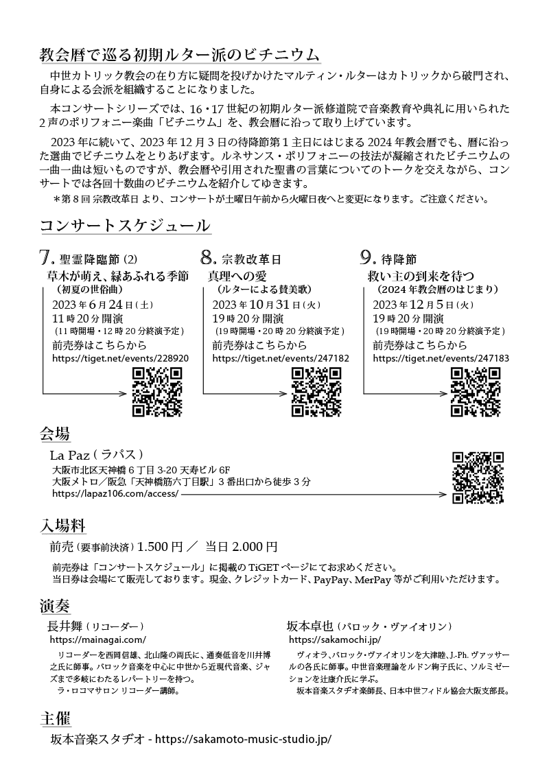 坂本卓也氏とともにお届けするコンサートシリーズ「教会暦で巡る初期ルター派のビチニウム」第7回は、「聖霊降臨節-草木が萌え、緑あふれる季節」と題してお届けします。
