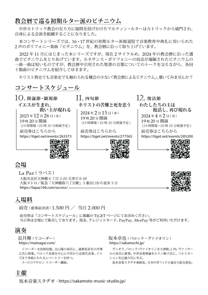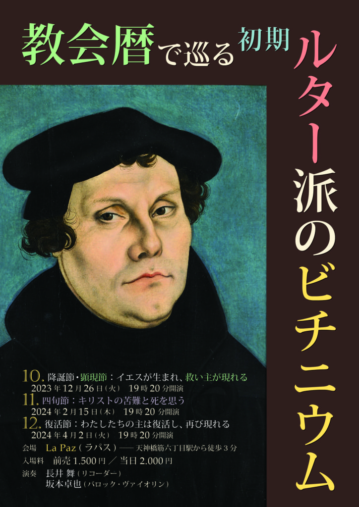 坂本卓也氏とともにお届けするコンサートシリーズ「教会暦で巡る初期ルター派のビチニウム」第11回は、本シリーズ2回目の「四旬節」です。